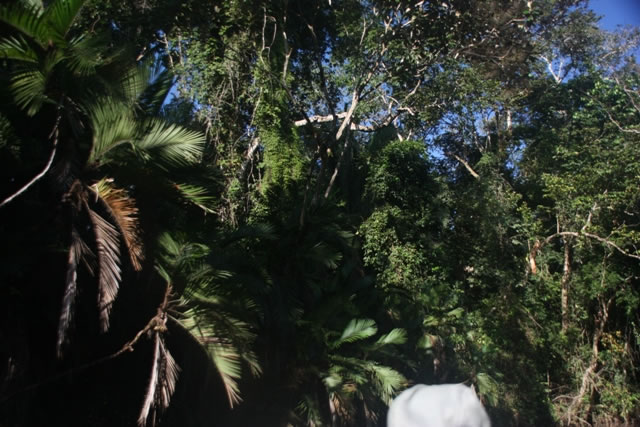 mit Beiboot mitten im Urwald